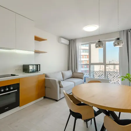 Апартаменти з видом на місто мають балкон і вітальню оснащений системою клімат-контролю, звукоізольованими стінами і пральною машиною. Для вашого комфорту в цьому помешканні є окремий туалет і душ. Також можна знайти фен, туалетно-косметичні засоби і банні рушники.